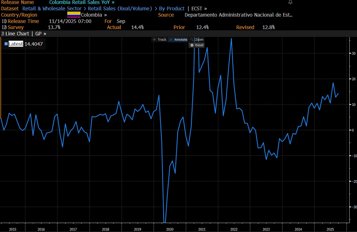 Really nice retail sales continue in Colombia.