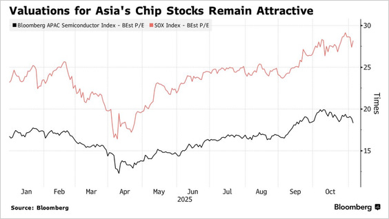 Chip stocks are almost 10x PE cheaper in Asia…