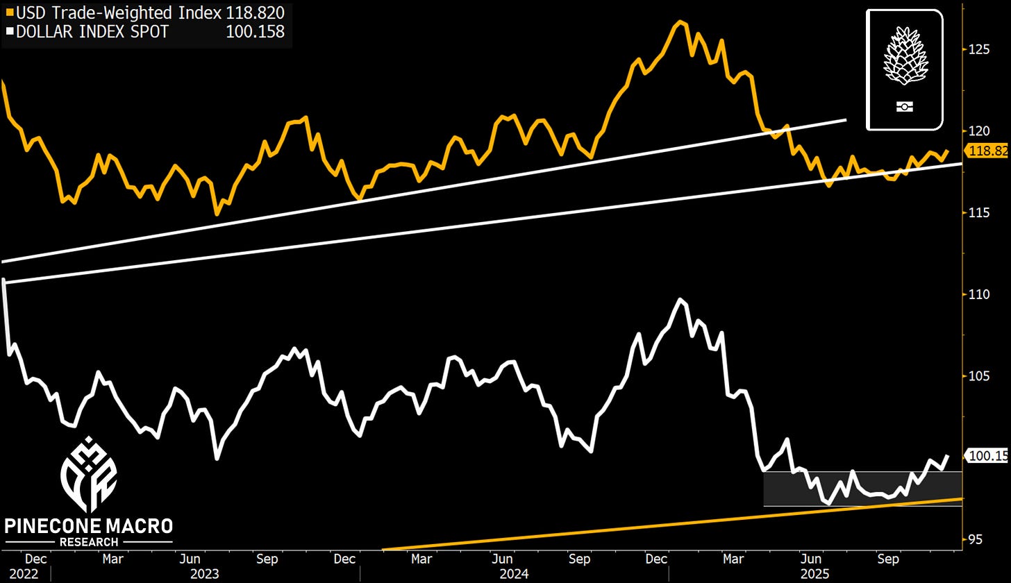 The Dollar continues to threaten a breakout higher.