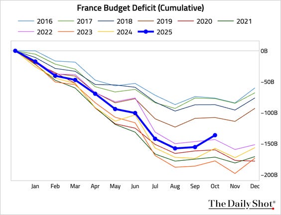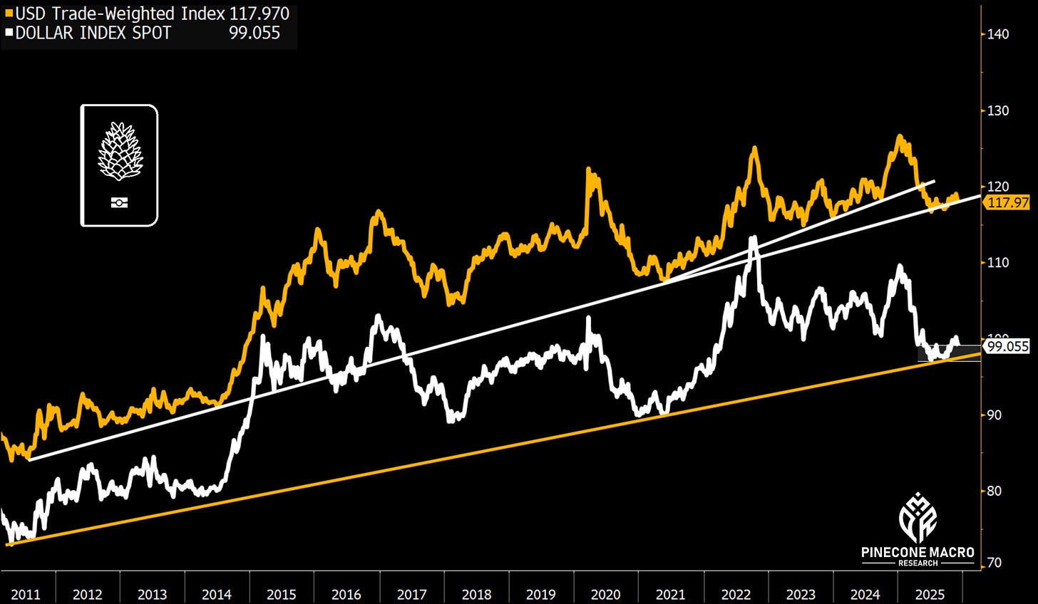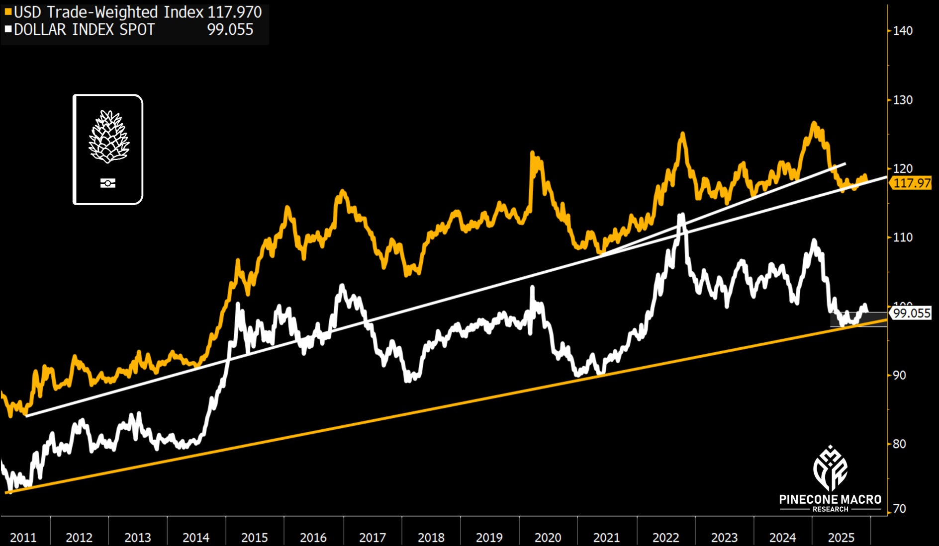 The Dollar now looks ready for a new leg lower and we of course are right near the longer term UTLs going into next year. I think the TGA being full and QT ending along with another rate cut allow for some downside here. With that said - inflation swaps have gone down a lot lately so inflation surprises to the high side would breathe life back into the Greenback.