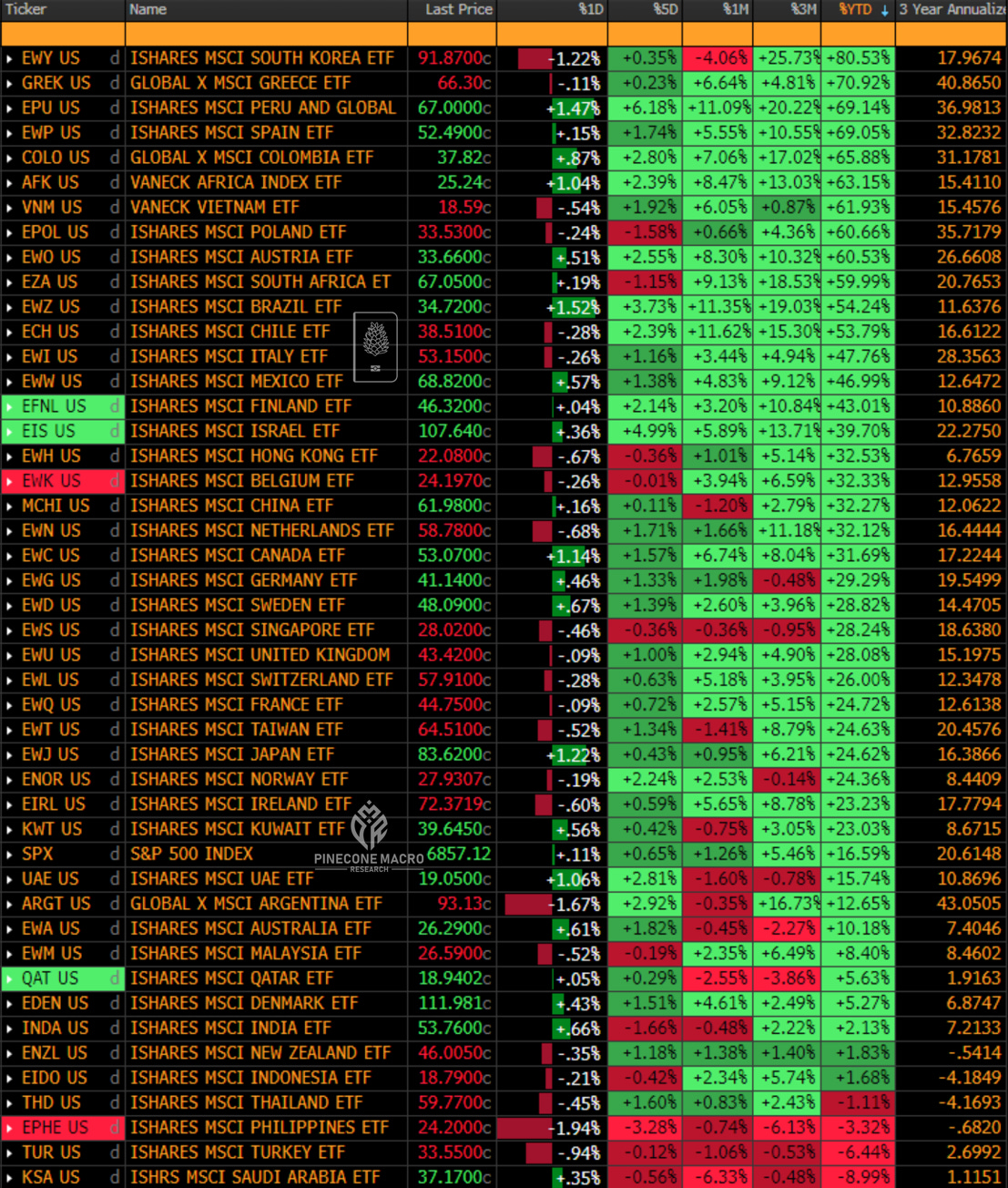 The US is now beating 13 countries but trailing 32. 12 different countries are up by more than 50% while the US is up less than 20%.