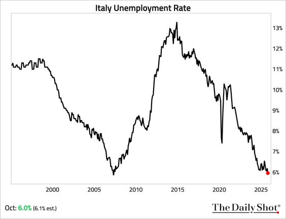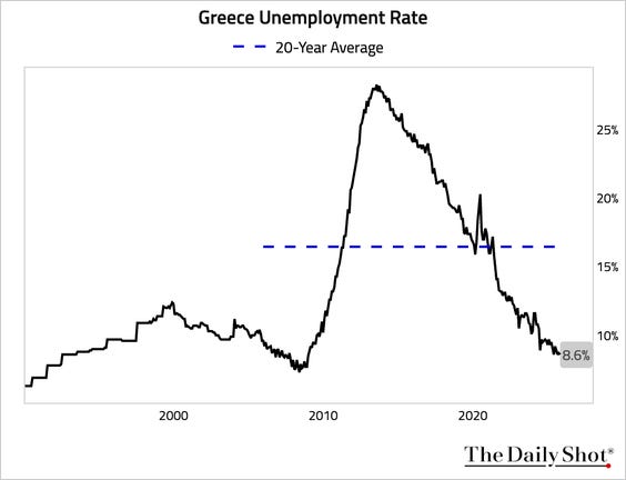All of Europe is crushing it on unemployment but impressive to see how far we are below the 20yr average in Greece.