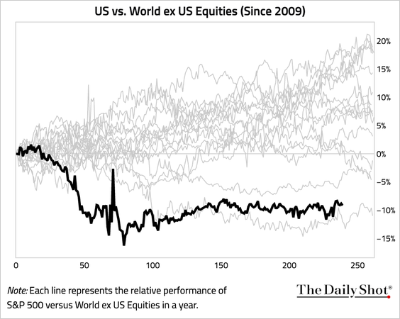 The US is having the worst year versus the rest of the world since 2009 and that is with record net capital inflows. Imagine what performance may look like with net capital outflows in the future.